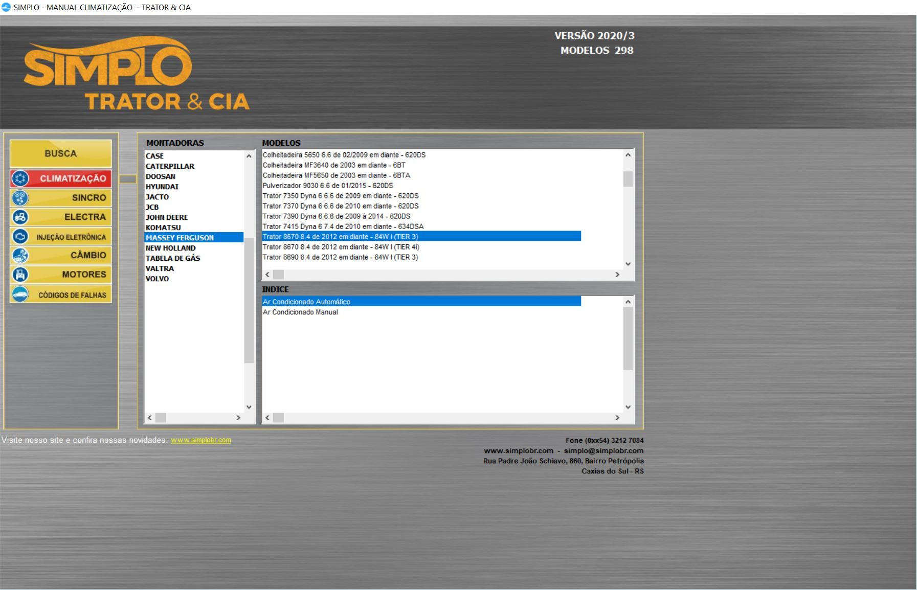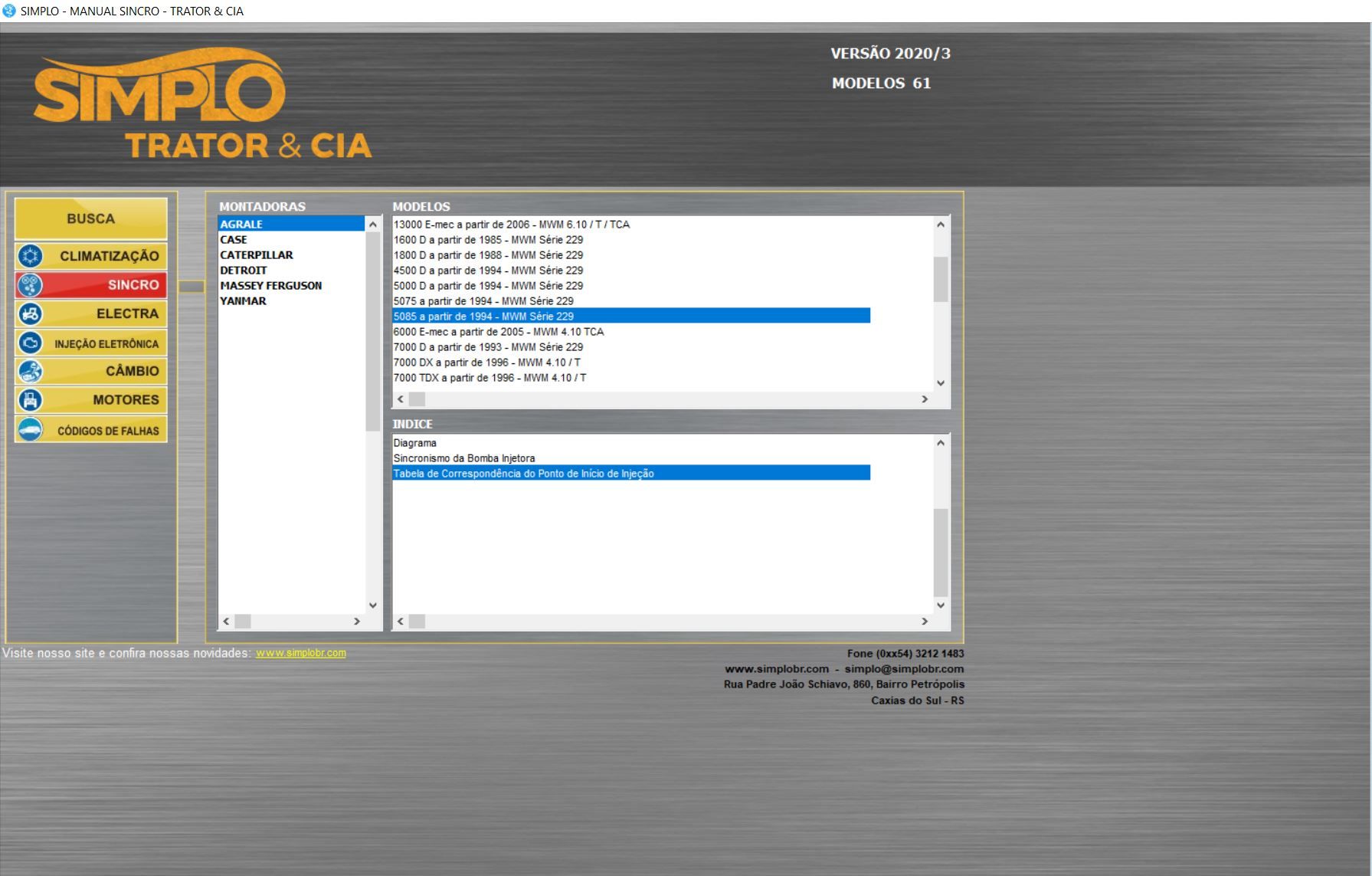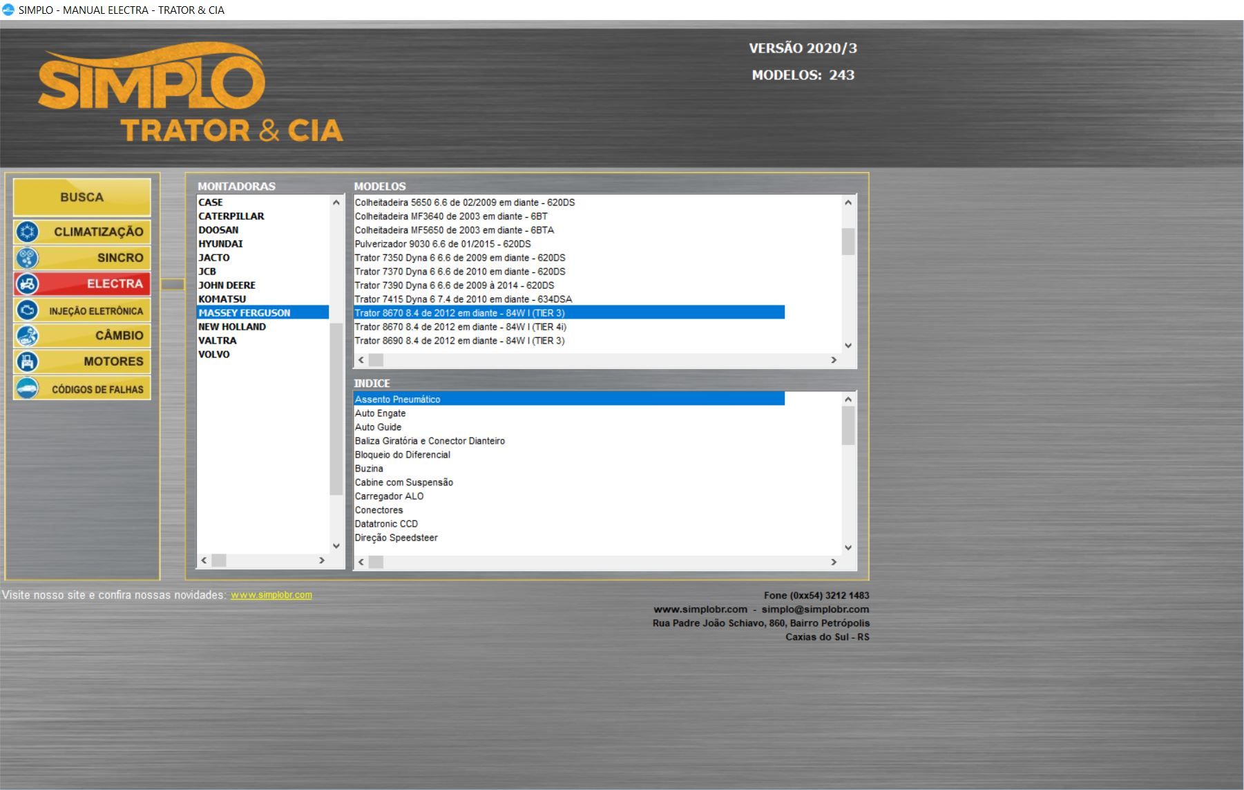Muito procurado por clientes localizados em regiões de plantio, como é o caso dos estados do Mato Grosso, Mato Grosso do Sul, Distrito Federal e Goiás, o pacote Trator e CIA é composto por sete manuais com informações sobre injeção eletrônica, climatização, sincronismo e elétrica automotiva.
